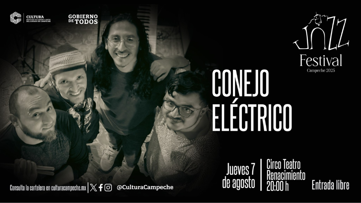 El Instituto de Cultura y Artes del Estado de Campeche dará inicio al esperado Festival de Jazz 2025 con la presentación de Conejo Eléctrico, agrupación de jazz funk originaria de Mérida, Yucatán. La cita será este jueves 7 de agosto a las 20:00 horas en el Circo Teatro Renacimiento con entrada gratuita.