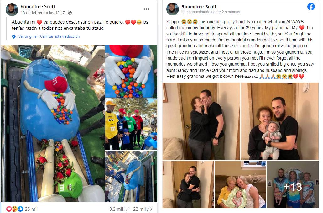 Según Scott, quien se identificó como nieto de la mujer, y comentó en su publicación en Facebook este funeral era el último deseo de su abuela y compartió varias imágenes del sepelio de la mujer mostrando el original diseño del ataúd en forma de M&M’s.