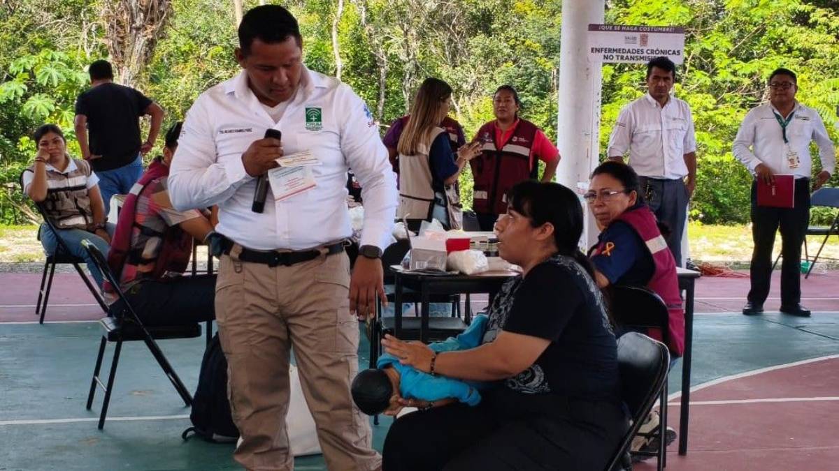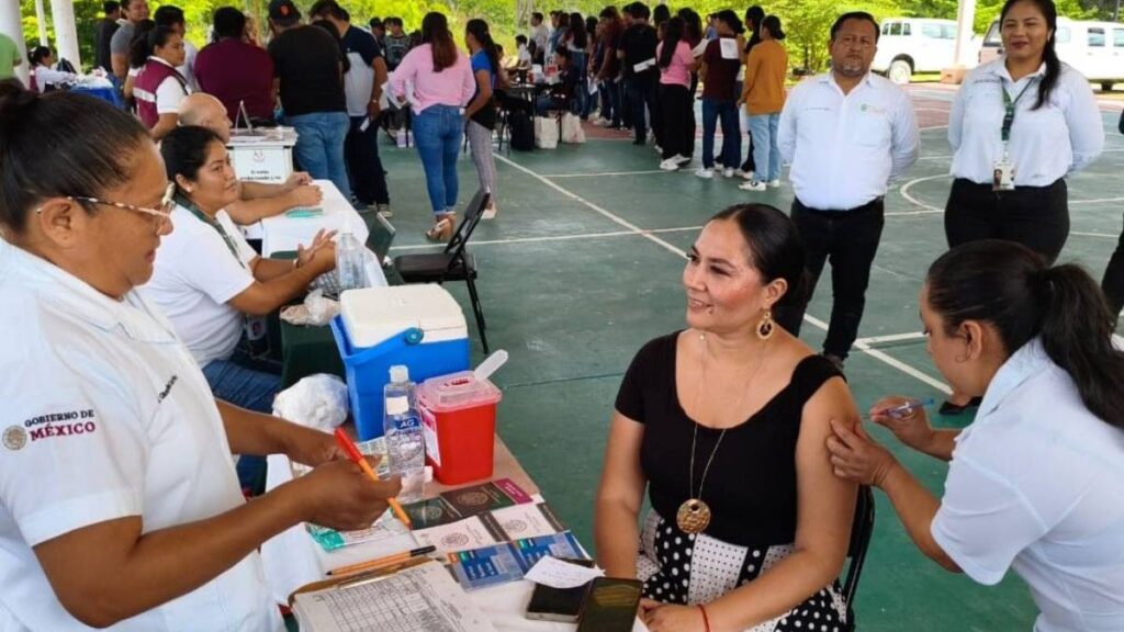 A través de una jornada más de Salud en tu Barrio, promotores del Distrito de Salud para el Bienestar No. 2. Instalaron módulos de vacunación universal, enfermedades cardiometabólicas con medidas de peso y talla, hipertensión arterial y diabetes, salud bucal, materna y métodos anticonceptivos, prevención de la violencia contra la mujer y un módulo del DIF Municipal.