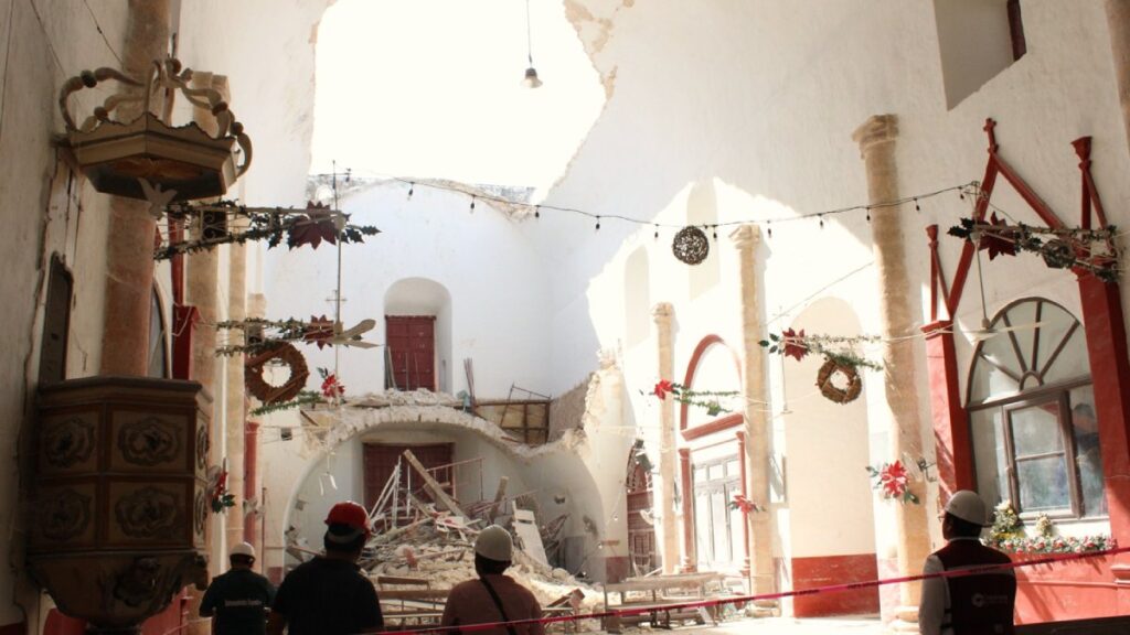 La Autoridad del Patrimonio Cultural del Estado de Campeche se mantiene en constante acompañamiento para la pronta recuperación de la bóveda de la parroquia de San Luis Obispo en el municipio de Calkiní, lo anterior en coordinación con las autoridades federales y municipales.