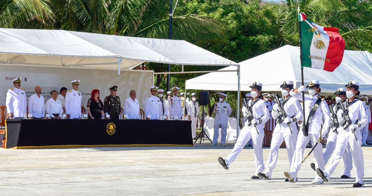 Se pasó lista de honor a los héroes de la Escuela Naval Militar, seguido de un Toque de Silencio y salva de honor, así como un desfile del personal integrante de la columna naval militar que participó en el evento.