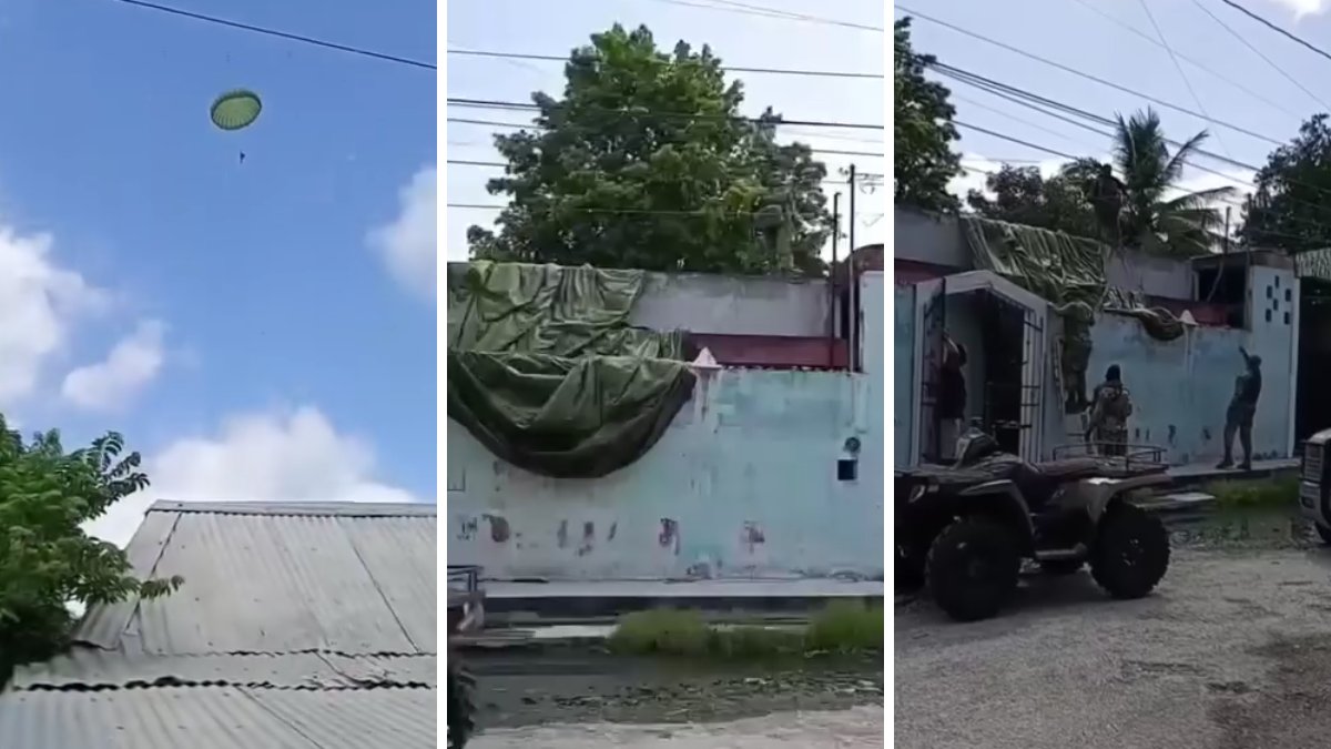 Aterriza paracaidista de la Marina en el techo de una casa en Champotón