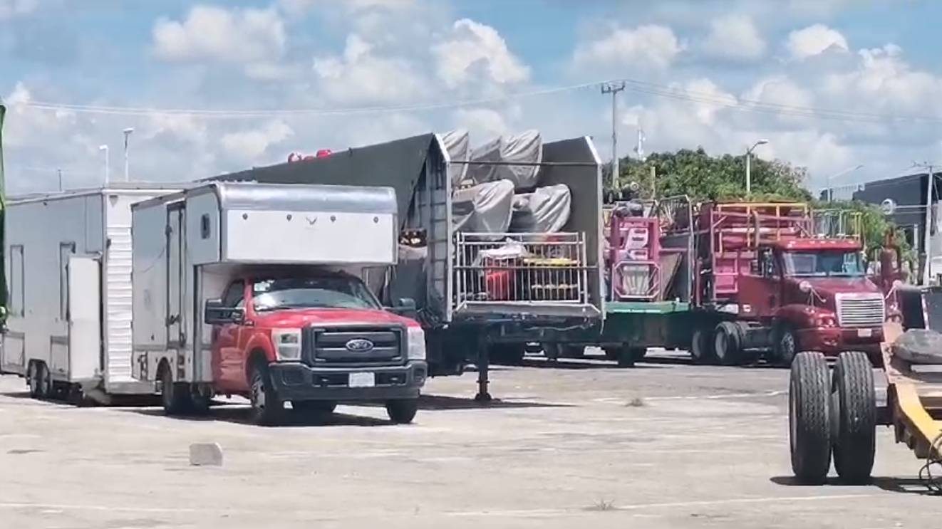 A pesar de que autoridades municipales aseguraron que desde ayer ya se estarían instalando las estructuras metálicas, éstas todavía permanecen en los tráileres y camiones de carga.