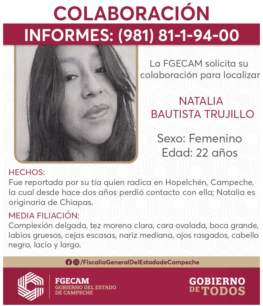 Locales Ayuda para localizar a Natalia Published 4 años atrás on 9 de mayo de 2022 By Editor CauceCampeche Temas relacionados:Redes Sociales siguiente Asesinan a periodista en Cosoleacaque, Veracruz anterior Ayúdanos a localizarla Continue Reading Publicidad Te podría gustar Reconoce Presidenta a Margarita Maza como Primera Embajadora Histórica de México Infonavit realiza quinta entrega de Viviendas del Bienestar en Quintana Roo Efemérides – celebraciones, santoral Presiona para comentar Leave a Reply Cancelar la respuestaTu dirección de correo electrónico no será publicada. Los campos obligatorios están marcados con *Comentario * Nombre * Correo electrónico * Web Guarda mi nombre, correo electrónico y web en este navegador para la próxima vez que comente. Publicidad Más reciente Lo más visto Videos Nacional6 horas atrás Reconoce Presidenta a Margarita Maza como Primera Embajadora Histórica de México Noticias11 horas atrás Infonavit realiza quinta entrega de Viviendas del Bienestar en Quintana Roo Cultura e Historia14 horas atrás Efemérides – celebraciones, santoral Locales1 día atrás Marchan por el Día Mundial del Síndrome de Down Locales1 día atrás Reciben incentivo de 108 mdp productores de maíz blanco en Campeche Int. del Edo. Municipal1 día atrás Impulso marítimo-portuario sin precedentes con el gobierno de Layda Sansores Locales1 día atrás Abre cartelera de eventos Playa Bonita para Semana Santa y Pascua 2026 Int. del Edo. Municipal1 día atrás Grieta pone en peligro la torre y el patrimonio de la Parroquia de la Natividad de Bécal En Vivo1 día atrás Cauce Campeche Noticias | 20-03-2026 Int. del Edo. Municipal1 día atrás Petróleo cierra semana en casi 100 dólares por barril Cultura e Historia14 horas atrás Efemérides – celebraciones, santoral En Vivo2 días atrás #MañaneraDelPueblo Columnas Escritas7 días atrás Baluarte Político Columnas Escritas7 días atrás El Postigo Análisis TV6 días atrás Chismes de Café | 16-03-2026 Locales1 semana atrás Exigen retorno de antiguas unidades de transporte por mal servicio en Lerma Locales5 días atrás Vinculan a proceso por homicidio calificado en grado de tentativa, daño en propiedad ajena y motín a Rosa N y Yahari N tras marcha 8M Int. del Edo. Municipal4 días atrás Fuertes lluvias causan inundaciones y caos vehicular en Ciudad del Carmen En Vivo4 días atrás Cauce Campeche Noticias | 17-03-2026 Locales3 días atrás Operativo especial de Ángeles Verdes por Semana Santa Análisis TV2 días atrás Chismes de Café | 20-03-2026 En Vivo2 días atrás #MañaneraDelPueblo En Vivo2 días atrás Cauce Campeche Noticias | 19-03-2026 En Vivo3 días atrás Cauce Campeche Noticias | 18-03-2026 Análisis TV4 días atrás Chismes de Café | 18-03-2026 Análisis TV4 días atrás En la Ruta del Jaguar | 18-03-2026 En Vivo4 días atrás Cauce Campeche Noticias | 17-03-2026 En Vivo4 días atrás Martes del Jaguar | T5 capítulo 24 | 17-03-2026 Análisis TV6 días atrás Chismes de Café | 16-03-2026 En Vivo1 semana atrás Cauce Campeche Noticias | 13-03-2026 Lo más Visto Cultura e Historia14 horas atrás Efemérides – celebraciones, santoral En Vivo2 días atrás #MañaneraDelPueblo Columnas Escritas7 días atrás Baluarte Político Columnas Escritas7 días atrás El Postigo