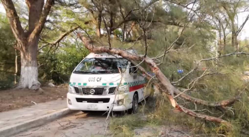 Mala suerte la del chofer de una combi colectiva proveniente de Isla Aguada, al circular por calles de la colonia Playa Norte en Ciudad del Carmen, la enorme rama de un árbol le cayó encima, dañando parte del parabrisas y el techo de la unidad generando así daños de mayor cuantía.