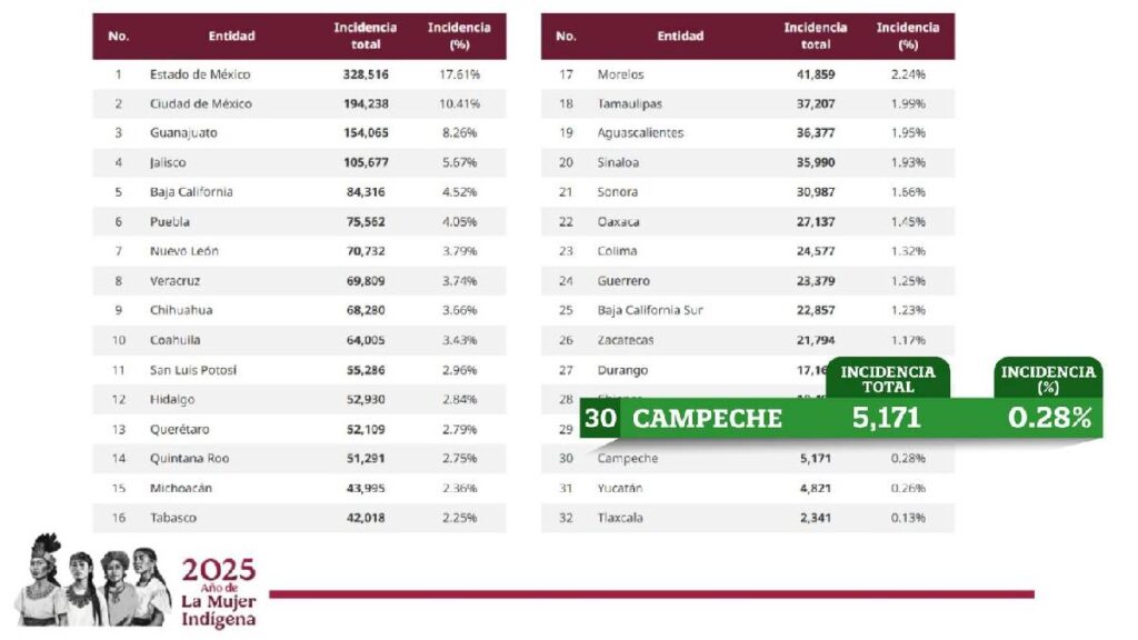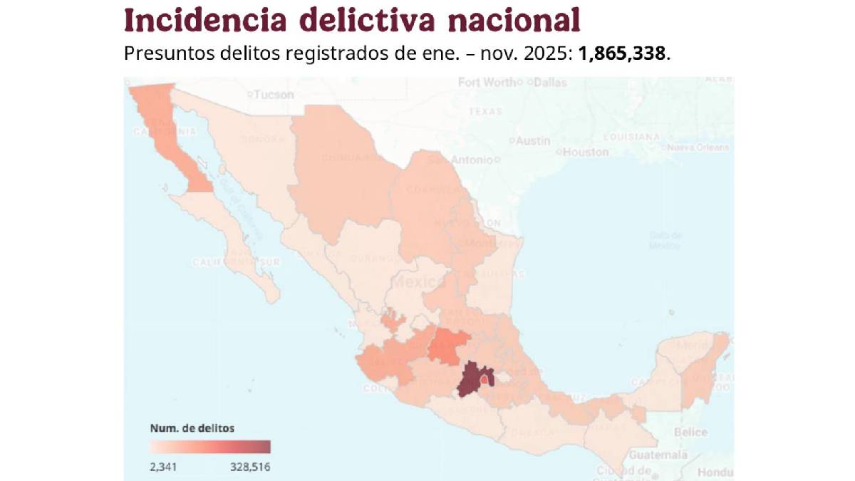 De acuerdo con los reportes del Secretariado Nacional de Seguridad Pública, Campeche se mantiene como el segundo estado con menor incidencia delictiva en noviembre y el tercero en el acumulado de todo 2025, destacó la gobernadora Layda Sansores San Román en una publicación en sus redes sociales.