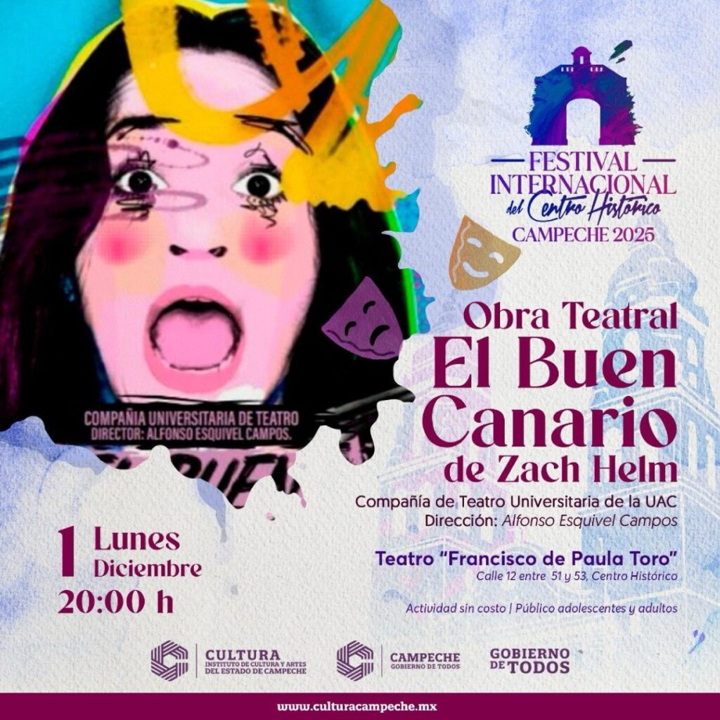 Para cerrar el primer día, a las 20:00 horas el Teatro «Francisco de Paula Toro» presentará «El Buen Canario» de Zach Helm, bajo la dirección de Alfonso Esquivel Campos y con la actuación de la Compañía Universitaria de Teatro de la UAC. Esta obra dramática transportará al público a la esfera del mundo editorial neoyorquino, explorando la lucha por la supervivencia en un sector dominado por los mecanismos del mercado.