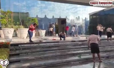 Desde temprana hora, trabajadores del Gobierno del Estado realizaron la limpieza de escarpas, escalones y cristales del Palacio de Gobierno, sede del Poder Ejecutivo, vandalizados el...