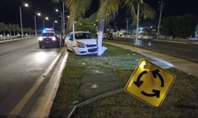 Conductora destrozó el frente de su auto al impactarse contra una de las palmeras del camellón del nuevo malecón de la avenida Justo Sierra en la...