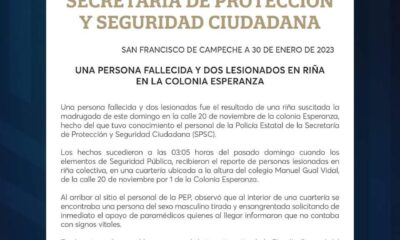 A través de un comunicado, la Secretaría de Protección y Seguridad Ciudadana, aclaró que si falleció una persona en la Esperanza este fin de semana. Después...