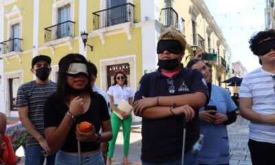 *Recorren la calle 59 con bastones guía y antifaces para ser conscientes y sensibles de la realidad que viven las personas con discapacidad visual. *En Campeche...