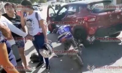 Imprudente motociclista se estrelló contra taxi en Plan Chac, afortunadamente sólo terminó con golpes en el cuerpo. El accidente se registró en la Avenida Antigua a...