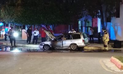 Debido a una falla mecánica un vehículo se consumió en llamas cuando transitaba sobre la Avenida Fundadores a la altura de las oficinas delegacionales del IMSS....
