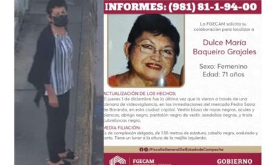 La Fiscalía General del Estado ha hecho pública la última fotografía de la señora Dulce María Baqueiro Grajales, quien se encuentra desaparecida desde el 1 de...