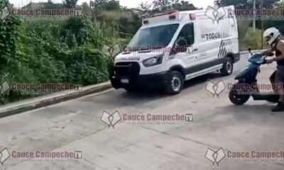 Familia a bordo de una motocicleta tuvo que ser llevada a un hospital después de derrapar a bordo de su motocicleta en la colonia 20 de...