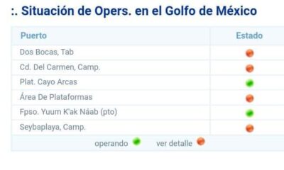 Debido a los efectos de lluvia que todavía persisten y efecto norte con vientos superiores a los 50 km/h, la API Campeche informa que algunos puertos...