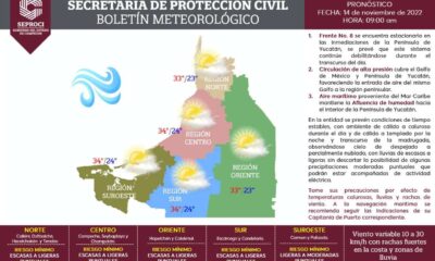 Un sistema de alta presión en combinación con los efectos estacionales del frente frío número 8 sobre el canal de Yucatán, generarán condiciones de ambiente cálido...