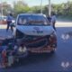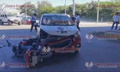 Conductor de taxi se pasa el alto y lesiona a pareja de motociclistas en el periférico de la ciudad a la altura del entronque de Chiná....