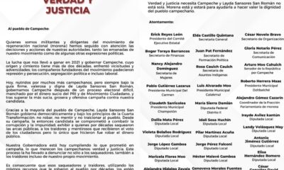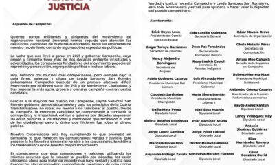 A través de un comunicado de prensa, dirigentes y autoridades emanadas del Movimiento de Regeneración Nacional (Morena) en Campeche, fijan su postura de solidaridad y apoyo...