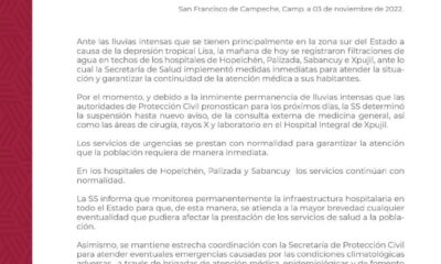 Ante las lluvias intensas que se tienen principalmente en la zona sur del Estado a causa de la depresión tropical Lisa, la mañana de hoy se...