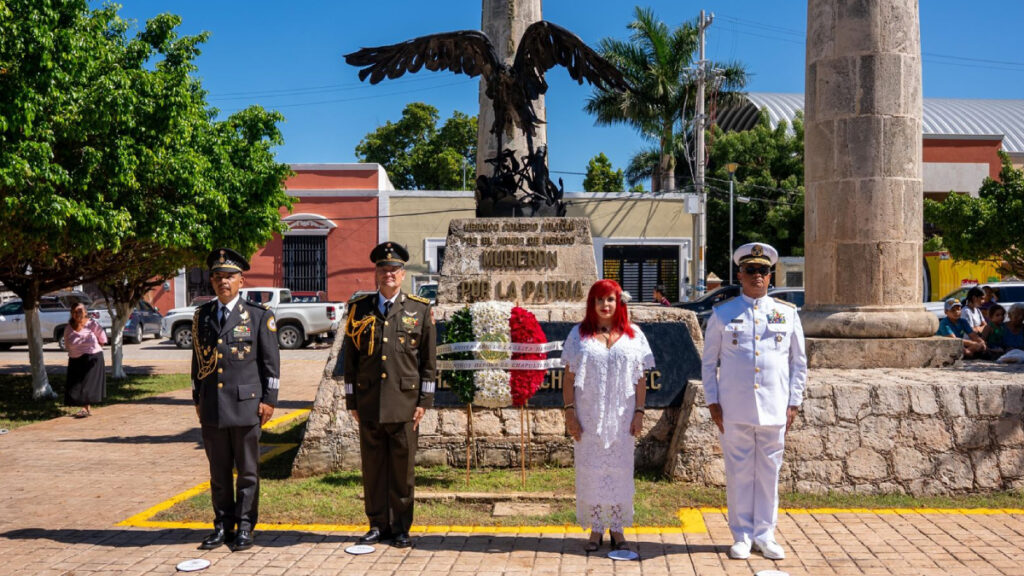 Acompañada de los mandos de la 33ª. Zona Militar, el General Alberto Román González Fernández, así como de la Séptima Zona Naval, Vicealmirante Alfredo Ramón Enríquez Delgado, la mandataria campechana montó guardia de honor y depositó ofrenda floral al pie del monumento y las columnas donde están inscritos los nombres de los seis cadetes que ofrendaron su vida ante la invasión norteamericana en 1847.