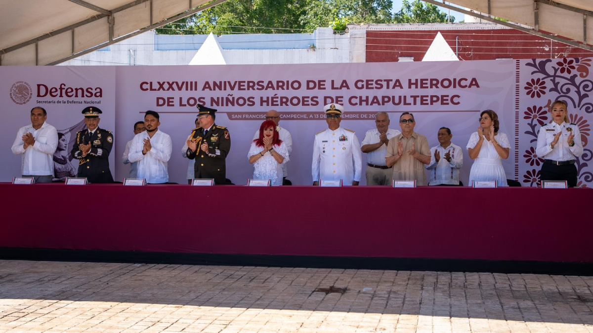 Acompañada de los mandos de la 33ª. Zona Militar, el General Alberto Román González Fernández, así como de la Séptima Zona Naval, Vicealmirante Alfredo Ramón Enríquez Delgado, la mandataria campechana montó guardia de honor y depositó ofrenda floral al pie del monumento y las columnas donde están inscritos los nombres de los seis cadetes que ofrendaron su vida ante la invasión norteamericana en 1847.