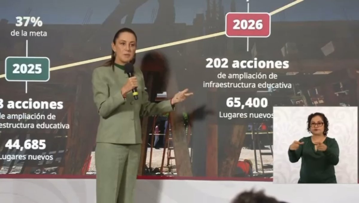 “¿Qué vamos a hacer en el 2026? 65 mil 400 nuevos lugares, es decir, 44 mil 685 más 65 mil 400 con 202 acciones de ampliación; ¿cómo? nuevos planteles, ampliación de planteles existentes y con esto que se llaman los telebachilleratos que le estamos dando una renovación de manera muy importante todos van a estar conectados a internet y están teniendo nuevos esquemas de formación y de enseñanza. De esta manera vamos a cumplir con que haya una preparatoria que quede cerca de la casa”, destacó en la conferencia matutina: “Las mañaneras del pueblo”.