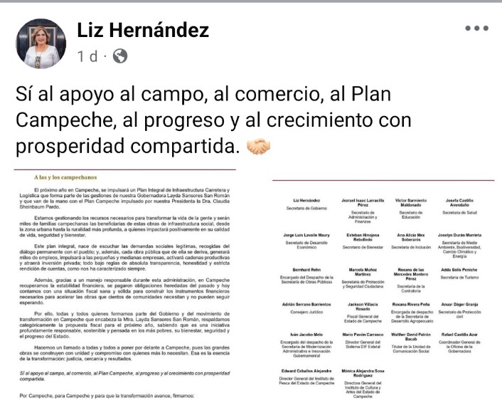 Incluso el alcalde de Carmen, Pablo Gutiérrez Lazarus, salió a apoyar la iniciativa de la Gobernadora y con ello a desmentir que sea él quien está detrás de los diputados en rebeldía, que dicho sea de paso, ya fueron señalados de servir a los intereses de Movimiento Ciudadano.