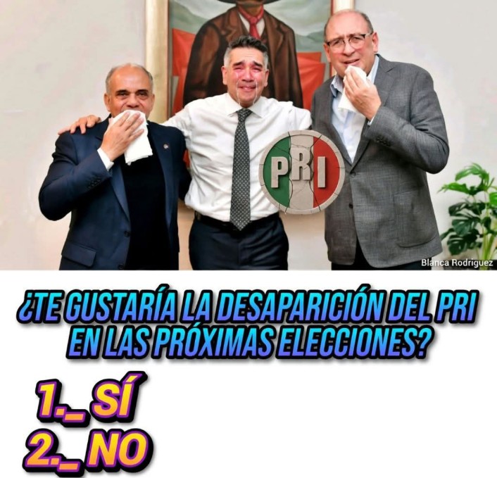 Algún ocioso preguntó en el Facebook: ¿Quieres la desaparición del PRI en el 2027? Casi 4 mil le dieron like y 3 mil opinaron… tambien por ociosidad nos dimos a la tarea de revisar si alguien decía que no… ¿y qué creen? Se fue invicto. Es decir, por unanimidad que desaparezca y algunos agregaron que el PAN también.