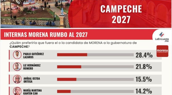 Muchas de las encuestas que hemos visto en los últimos meses dan una ventaja a Pablo Gutiérrez Lazarus, alcalde de Carmen tres veces; pero también hemos observado el crecimiento de Liz Hernández, secretaria de Gobierno, antes diputada local y secretaria de Bienestar.