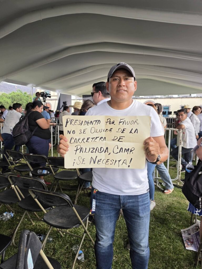 Javier Acate se llama el paliceño que en una reunión, en Morelos, le recordó a la presidenta Claudia Sheinbaum su compromiso con el pueblo de Palizada: la reconstrucción de la carretera Palizada-Santa Adelaida.