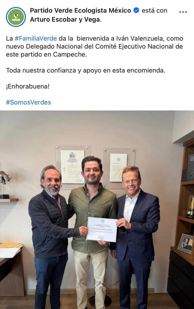 Que sea ahora Iván Gregorio Valenzuela Sánchez el nuevo delegado nacional del Partido Verde Ecologista de México (PVEM) en Campeche, o Juan de los Palotes, (y presuntamente al servicio de Eliseo N) no tiene nada de raro si nos fijamos tantito, nomás tantito, de la historia de esta franquicia que todavía regentean a nivel nacional el famoso Niño Verde (Jorge González) y también el ahora senador, muy finito por cierto, Manuel Velazco.