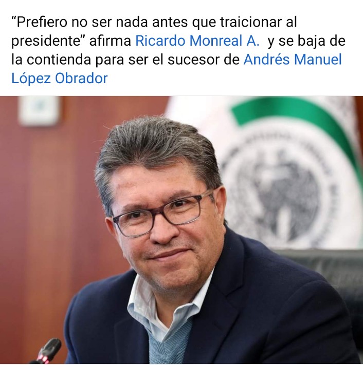 Monri escribió: “He dicho y sostengo que como fundador y como militante de morena, nunca voy a traicionar al Presidente, al licenciado López Obrador, prefiero no ser nada, prefiero no participar en nada antes de traicionar al presidente de la República, a quien reconozco y he caminado larga travesía de 26 años”. Reculó el Senador, seguramente tras una severa reflexión de su posición política y personal frente a López Obrador, a quien le debe mucho y así lo reconoció también.