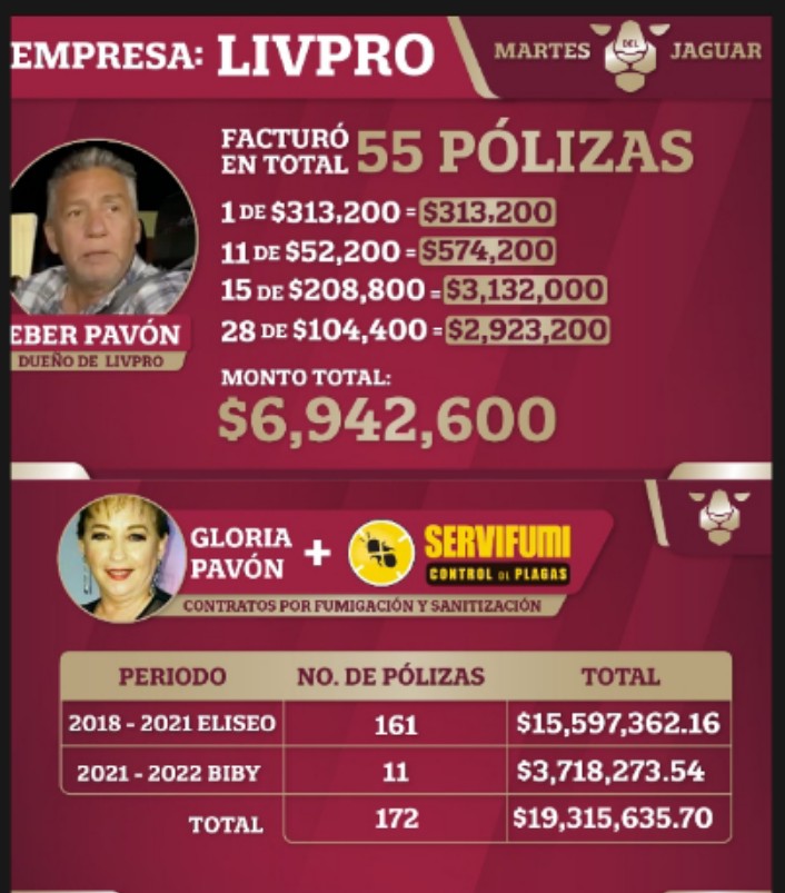 Casi 20 millones de pesos para la mamá de Barreda Pavón y casi 7 millones para su tío (al que, por cierto, negó en entrevista pública) a través de empresas de limpieza y desinfección (¿?). Pos qué tanto limpiaron. Bueno, no se han limpiado ni la conciencia, porque en realidad se trata de factureras o es al menos el papel que jugaron.