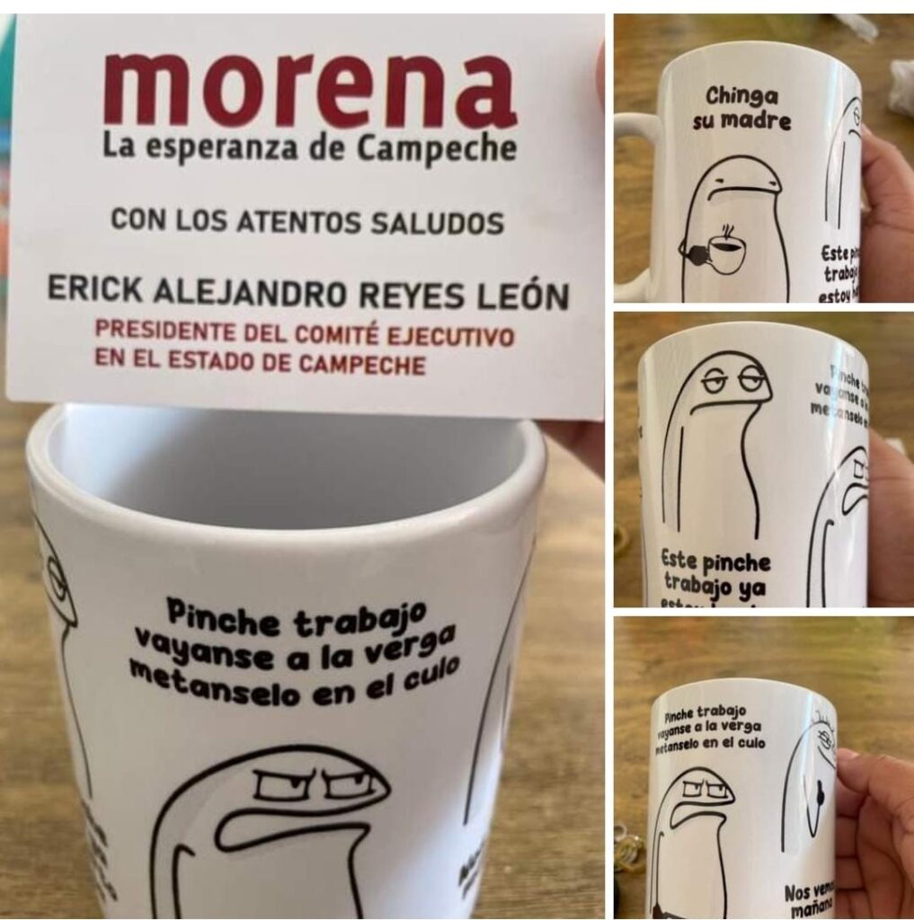 A Erick Reyes, el dirigente estatal de morena, le pareció relajado, buen detalle e incluso broma política, enviar de obsequio una taza con frases, algunas subidas de tono que, para decir verdad, son las que decimos a diario y en privado sin ningún rubor.