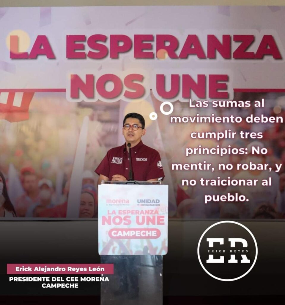 Lo dijo hace poquito Erick Reyes León, el dirigente de morena en Campeche: bienvenidos los que se suman de buena fe al trabajo de transformación de la vida pública nacional. Esos que llegan no deben contaminar y los mecanismos internos de morena deben ser suficientes para decidir quién sí y quién no para, entre otras cosas, evitar el camino que llevo al PRD a su autodestrucción: las corrientes críticas y las tribus.