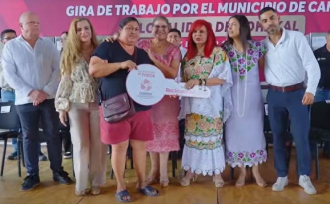 Asimismo, otorgó apoyos del programa Hogares en Bienestar, consistentes en 28 refrigeradores, 10 lavadoras, 10 tinacos y una estufa, con financiamiento estatal superior a $356,000 en beneficio a 49 familias de comunidades como Pich, Alfredo V. Bonfil, Tixmucuy, Nohakal, Pocyaxum, entre otras.