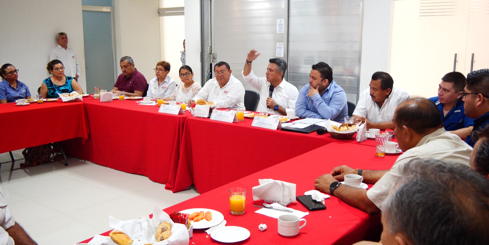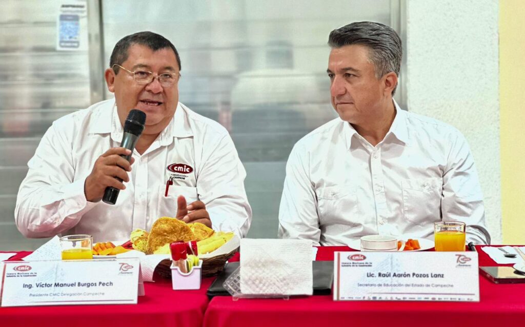 El secretario de Educación, Raúl Pozos Lanz, participó en una reunión con integrantes de la mesa directiva y afiliados a la Cámara Mexicana de la Industria de la Construcción (CMIC) delegación Campeche, encabezada por su presidente, Víctor Manuel Burgos Pech.