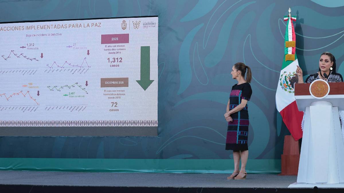 La Presidenta de México, Claudia Sheinbaum Pardo, informó que en Guerrero el promedio diario de víctimas de homicidios dolosos por mes se redujo 65% (de 6.58 a 2.32) de octubre de 2024 a diciembre de 2025. En Acapulco, la disminución fue del 71% (de 2.32 a 0.68), logrando menos de un homicidio diario.