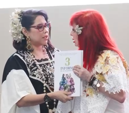 Más tarde, asistió a la presentación del Tercer Informe de Actividades del organismo, realizada en el Teatro “Virgilio Barrera Vega”, donde recibió una copia del documento que compila los resultados y avances en materia de derechos humanos durante el último año.