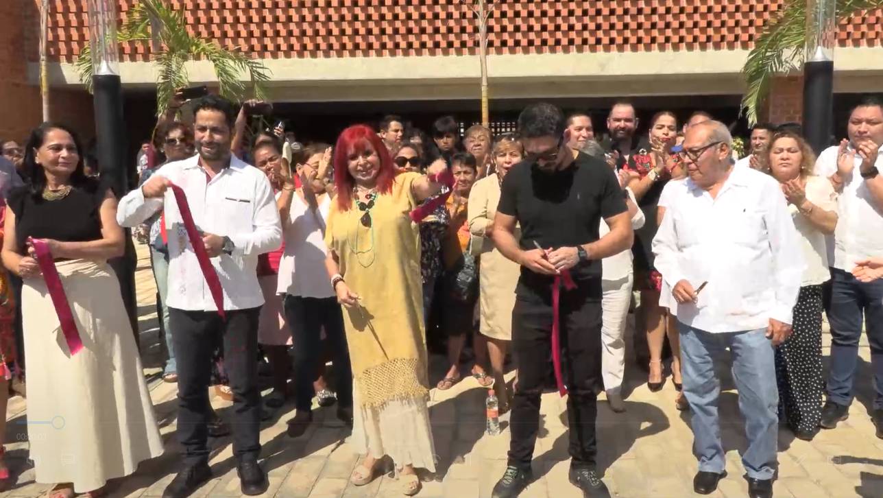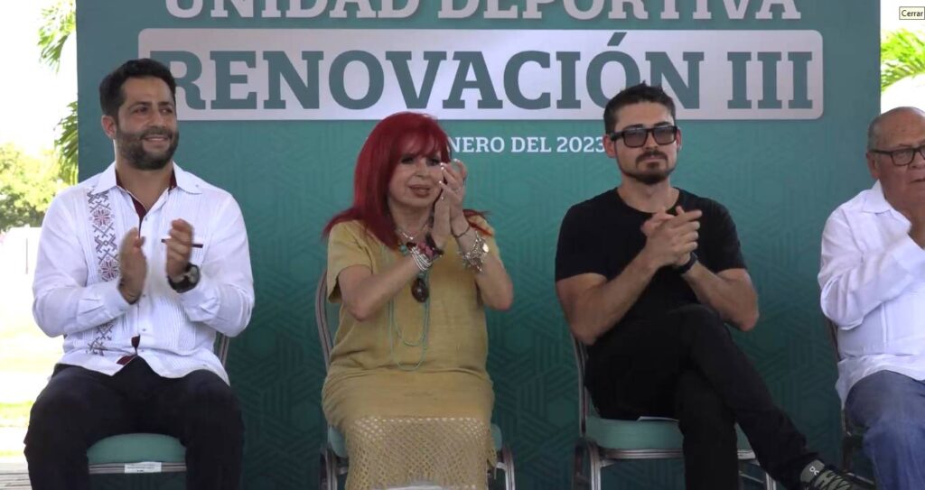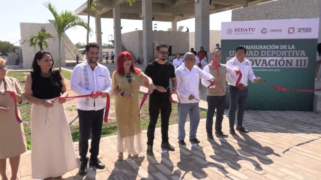 La licenciada Sansores, el titular de SEDATU, el secretario de Gobierno, Aníbal Ostoa Ortega, y el alcalde Pablo Gutiérrez Lazarus cortaron el listón inaugural y pusieron en operación el Centro Cultural Ágora y la Unidad Deportiva Renovación III.