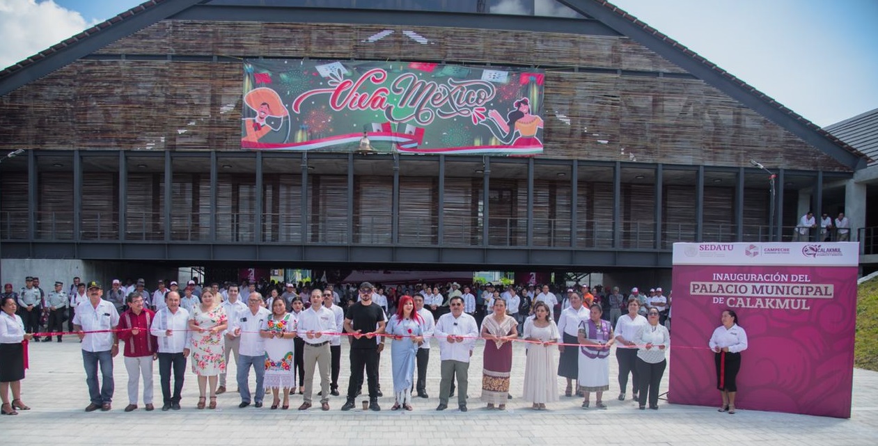 Acompañada del titular de la Secretaría de Desarrollo Agrario, Territorial y Urbano (SADETU), Ramón Meyer Falcón, así como por el secretario de Gobierno, Aníbal Ostoa Ortega, y el alcalde Alvarado Moo, realizó el corte del listón inaugural del nuevo palacio municipal y de la Casa de la Cultura, ambos en Xpujil, capital del municipio de Calakmul.