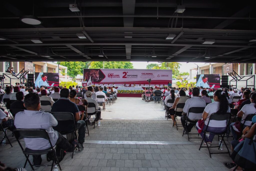 Posteriormente, la licenciada Sansores San Román y las autoridades se trasladaron a la cancha de usos múltiples, para llevar a cabo la sesión solemne de Cabildo convocada para informar a la comunidad calakmulense los logros y avances, así como el estado que guarda la administración municipal en el segundo año de gobierno.