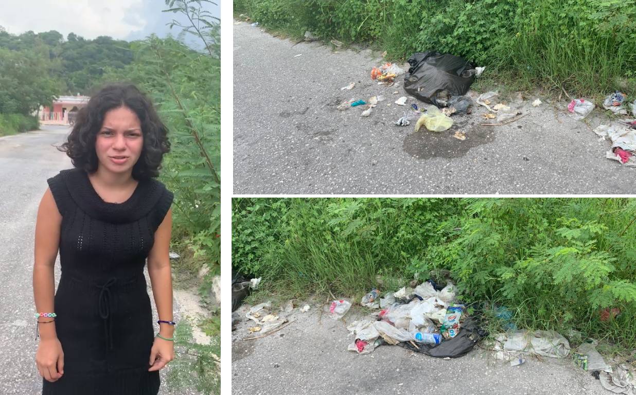 Inmundicia y desechos en calle de vecindario Ah-Kim-Pech
