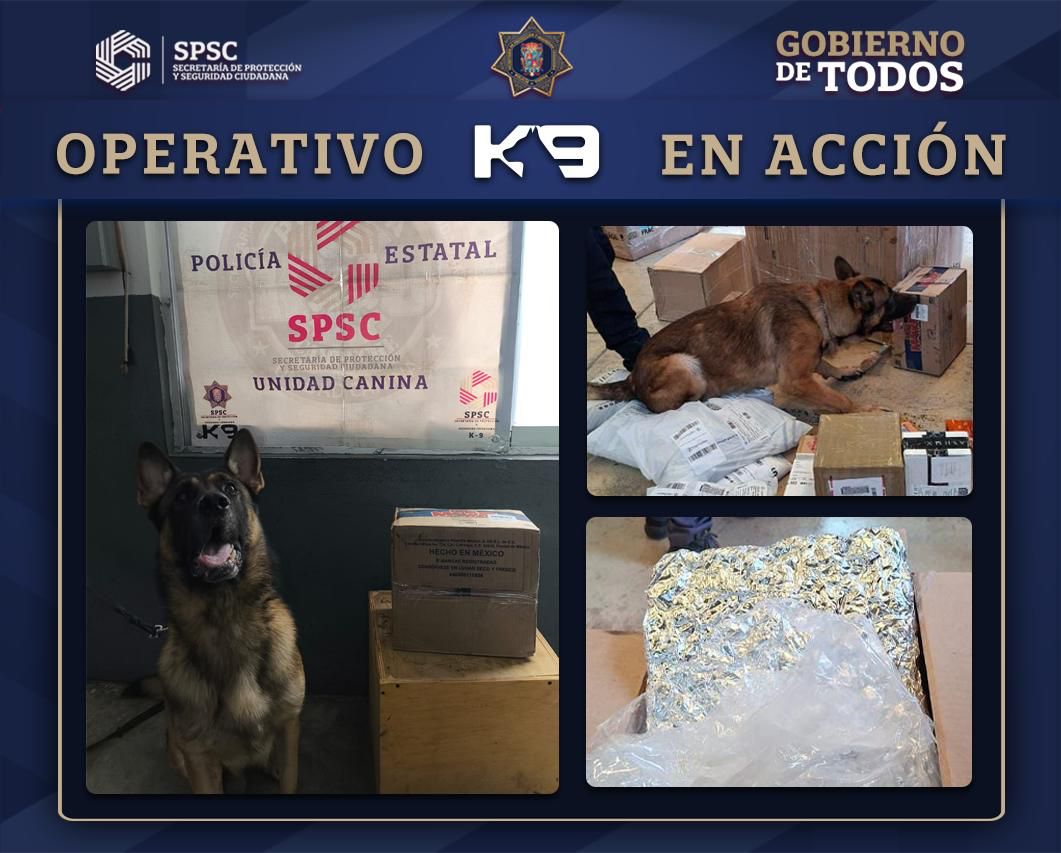Como parte de las acciones de prevención y combate a los delitos contra la salud, personal de la Secretaría de Protección y Seguridad Ciudadana, en coordinación con la Unidad K9, realizó una inspección de rutina en un centro de mensajería ubicado en la ciudad de San Francisco de Campeche.