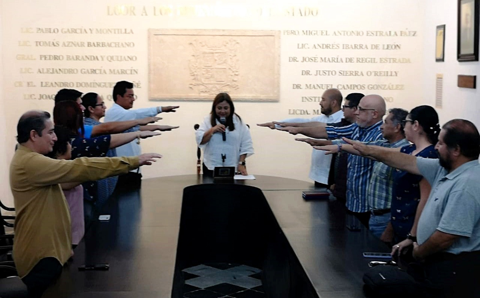 Ante el coordinador de la Unidad de Comunicación Social del Gobierno del Estado, Walther David Patrón Bacab, quien rindió protesta como miembro honorario, al igual que el director de Vinculación de la Oficina de la Gobernadora, Juan Manuel Herrera Real, Gutiérrez Pérez destacó la importancia que la presencia de los funcionarios significaba, “pues deja en claro que, para el Gobierno de Layda Sansores San Román, la profesionalización de los medios es una asignatura relevante”.
