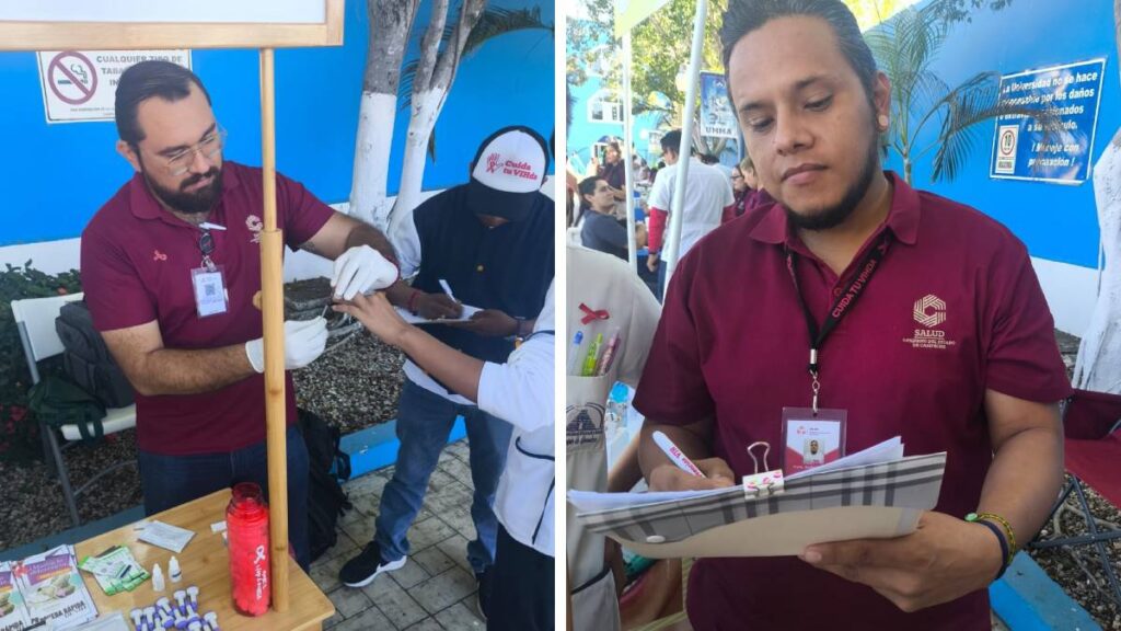 A través de jornadas de prevención del VIH, la Secretaría de Salud llega a sitios públicos, escuelas y centros laborales para reforzar las acciones informativas, orientando a la población sobre la enfermedad mediante la aplicación de pruebas rápidas y la distribución de preservativos para su prevención y detección oportuna.