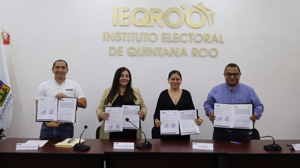 El Colegio de Profesionistas en Comunicación (CPCQR) y el Instituto Electoral de Quintana Roo (IEQROO) firmaron un convenio con el objetivo de fortalecer el ejercicio del periodismo y la comunicación, la cultura política, la participación en las decisiones colectivas y la construcción de ciudadanía, este 30 de abril en las instalaciones del organismo autónomo electoral.