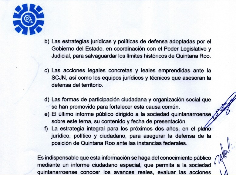 Y agrega: “La historia ha demostrado que la defensa de nuestro territorio ha sido siempre una causa compartida entre gobierno y ciudadanía. Por ello, exhortamos a que esta comunicación sea atendida con responsabilidad, prontitud y transparencia, en apego a principios democráticos y rendición de cuentas que debe regir la vida pública del pueblo de Quintana Roo”.