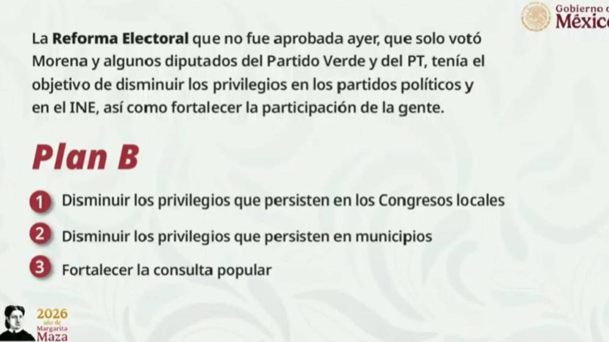 Ante el palo legislativo a la presidenta, en la que “aliados” actuaron como verdugos del proyecto, Claudia Sheinbaum presentó el Plan B en la mañanera de este 12 de marzo.